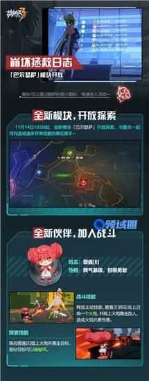 「崩坏拯救日志」活动进行中,「巴尔瑟萨」模块现已开放,与爱衣一起寻找造成诸多异常现象的幕后黑手~完成该区域拯救行动,逐步修复系统,将解锁新的「数据回收·B」关卡和「漏洞消除·B」关卡,完成挑战可获取更多拟似水晶和管理员芯片。参与活动可获取午夜苦艾全新服装「魅夜鸦语」、水晶、时帆旅人碎片等奖励!