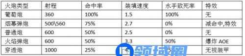 葡萄炮是直接对水手造成杀伤的,火焰炮是群体伤害,穿透炮可以无视敌人护甲,而烟幕弹炮可以使上述三种炮的特性消失,变为普通伤害。