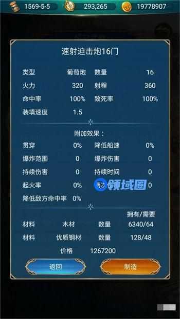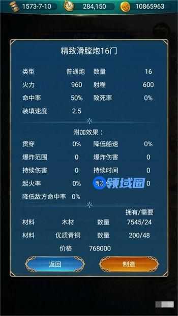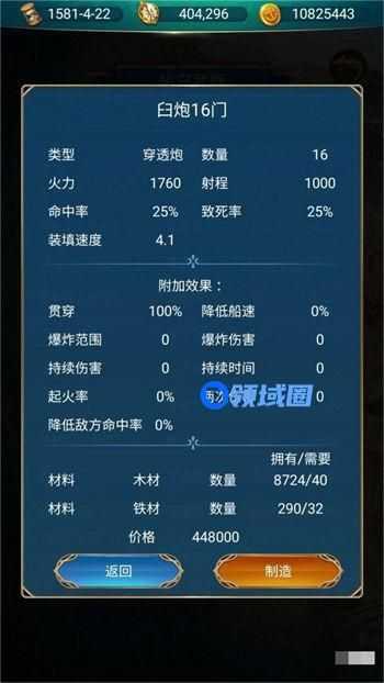 可以很直观的看到滑膛炮的射程、命中和装填速度和甲板炮一样,火力少了64。各位普通炮爱好者可酌情换装。