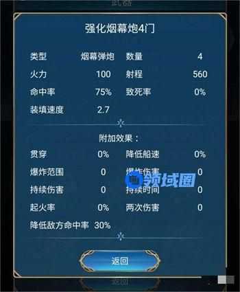 特效是降低对方30%命中率,基本上除了葡萄炮,其他炮中了一发就瞎了,要是穿透炮中了,画面太美。而且除了降命中,还有个更bug的效果“清除对方火炮特效”,可以让对方的火炮特效消失,变成普通伤害。