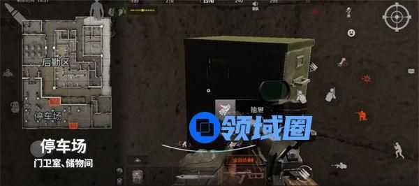 先来看看老区的资源分布,西南侧的停车场面积较大,但资源不多,只有门卫室和对门的储物间有几件工装和物资箱、武器箱。储物间需要钥匙打开,桌子上也会刷新一些武器配件。如果出生点在停车场,可以顺手搜索一番。