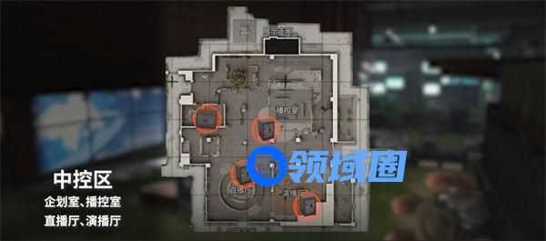 地图中央的中控区是电视台里物资最为丰富的区域,各个位置都会散落着一些物资。在企划室、播控室、直播厅和演播厅还分别有一个保险箱,除了企划室的门需要钥匙开启,其他三个都是可以“白嫖”的免保。