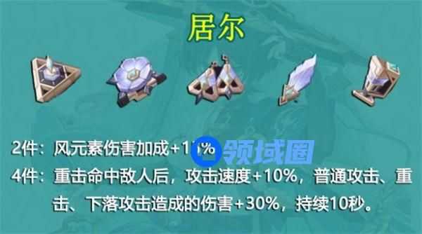 这个圣遗物套装,2件套增加的是风属性伤害,4件套是重击击中敌人后,加10%的攻速,而且普攻,重击和下落攻击的伤害都加30%。