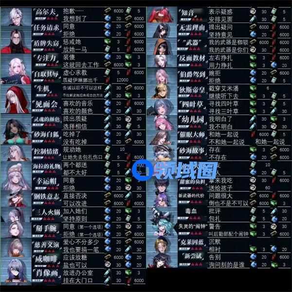 无期迷途中有各自精彩的故事剧情等着大家去推进了解,这款手游设计最好的地方就是剧情和角色的塑造了,让玩家们可以全身心的沉浸到剧情中去。在游戏中玩家可随着活动的玩法了解到角色的背景故事,也能在特殊的玩法中触发不同角色的监管事件,这些监管事件会触发互动选项供玩家们选择,选择的选项不同最后得到的奖励有所不同,导致了许多玩家不知在该监管事件下应该选择哪个选项会比较好,这个问题大家不用担心,我下面有汇总不同监管事件对应选项的奖励,接下来为大家介绍一下无期迷途监管事件奖励一览。