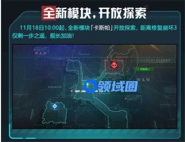 「崩坏拯救日志」活动进行中,「卡斯帕」模块现已开放,距离修复崩坏3仅剩一步之遥,舰长加油!完成该区域拯救行动,逐步修复系统,将解锁新的「数据回收·C」关卡和「漏洞消除·C」关卡,完成挑战可获取更多拟似水晶和管理员芯片。参与活动可获取午夜苦艾全新服装「魅夜鸦语」、水晶、时帆旅人碎片等奖励~