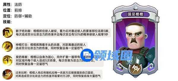 棍棍入场后将随机拉拽一名敌方后排英雄到自己面前,对其造成百分比攻击力的伤害并眩晕对方2秒,同时恢复自身大量怒气