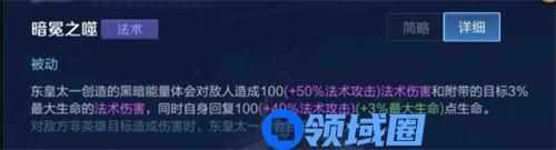 被动:简单来讲就是东皇身边的三个黑色球体能够对敌人造成伤害,并回复血量。
