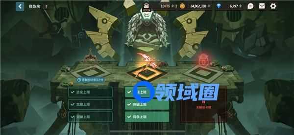 2、有关开放卡槽的解锁条件,可以进入修炼房以后,点击【问号图标】查看卡槽的解锁条件(提升关卡完成度或者传奇英雄的人数),最后完成条件之后点击【确认】选项就可以成功解锁卡槽了;