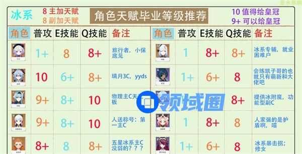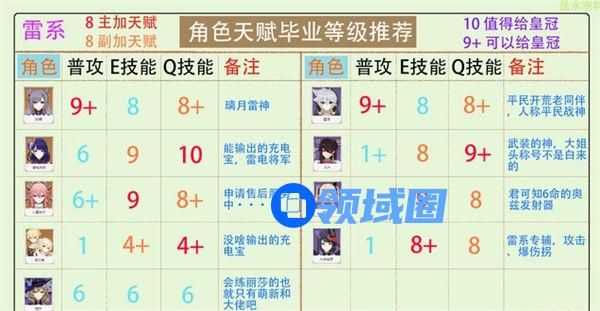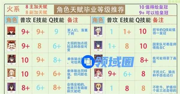 下面会按照角色的神之眼属性,给出全角色的天赋加点推荐。