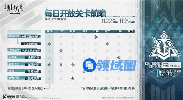 明日方舟赝波行动每日开放关卡时间一览: