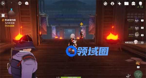 4、之后击败所有敌人可以在尽头看到万叶,上前与万叶互动。
