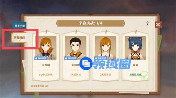 3、将牌手等级升级至2级,再打开[牌手手册]就能够看到[来客挑战]了。可以在猫尾酒馆中找到来客并进行挑战。