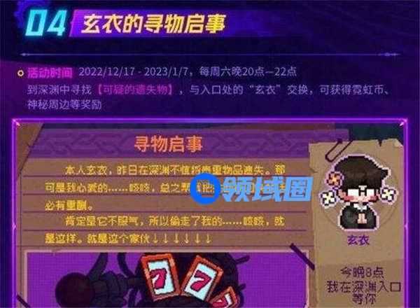 霓虹深渊无限玄衣的寻物启事怎么玩: