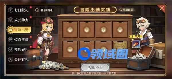 1.冒险出勤开启期间,每天活跃达到100即可开启一次宝箱。