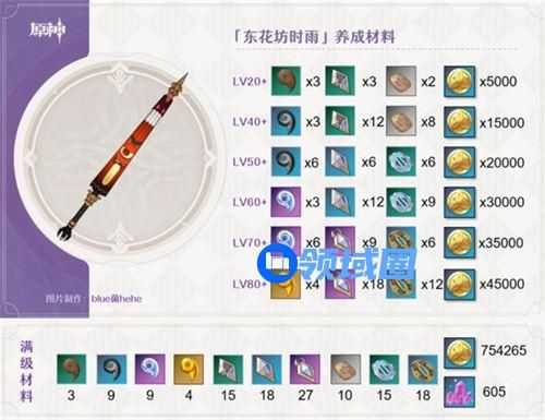 因此东花坊时雨的价值就是和铁蜂刺、西福斯的月光相同的精通主词条。如果萌新缺少铁蜂刺,那么可以把当做铁峰刺二号去使用。但是东花坊时雨的养成材料需要在稻妻和须弥两地获取,培养难度比铁峰刺高。