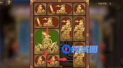 5、中间的方块全部向上移动,将军向右移动一格。