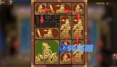 2、左下的小正方形向中间移动,将军下移一格,上方的长方形下移一格;
