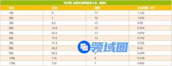 以上就是王者荣耀司空震的攻速阈值表格分享一览的全部内容,更多精彩内容攻略请持续关注领域圈,小编将持续更新更多相关攻略。