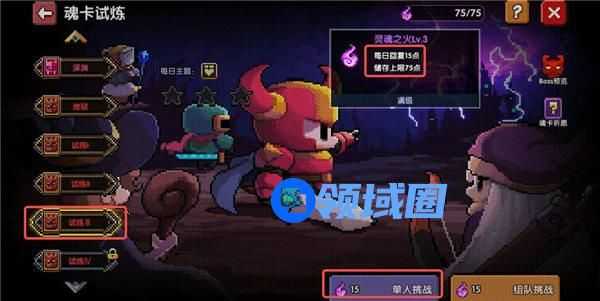 ①现挑战魂卡试炼消耗的资源为“灵魂之火”,灵魂之火每日产出15点。越到高层数关卡消耗完当天产出的“灵魂之火”速度越快(最快一天只用挑战一次)。