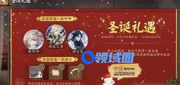 前三次购买每次可获赠一款自选「圣诞礼遇」限定装饰,装饰奖励将通过邮件发放,邮件可能有一定延迟。