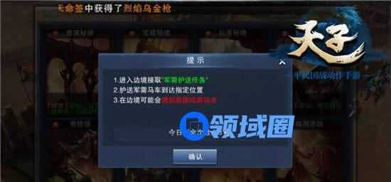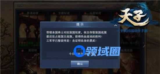 以上是领域圈小编为您整理提供的游戏攻略,希望这个攻略对您有所帮助,请时常关注领域圈《天子》专区,领域圈将为您提供最新的攻略。