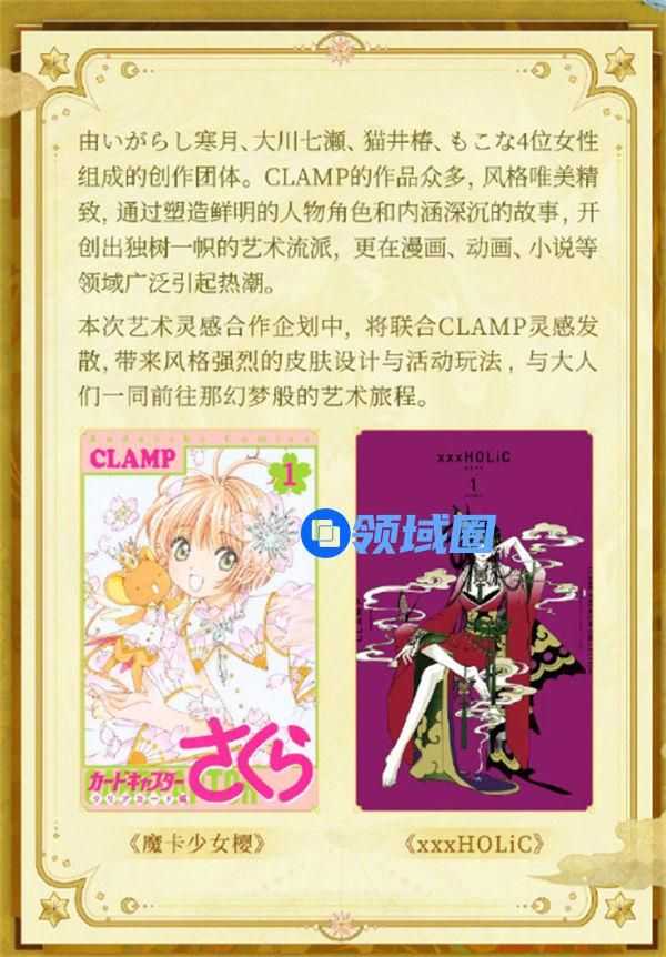 本次艺术灵感合作企划中,将联合CLAMP灵感发散,带来风格强烈的皮肤设计与活动玩法,与大人们一同前往那幻梦般的艺术旅程。