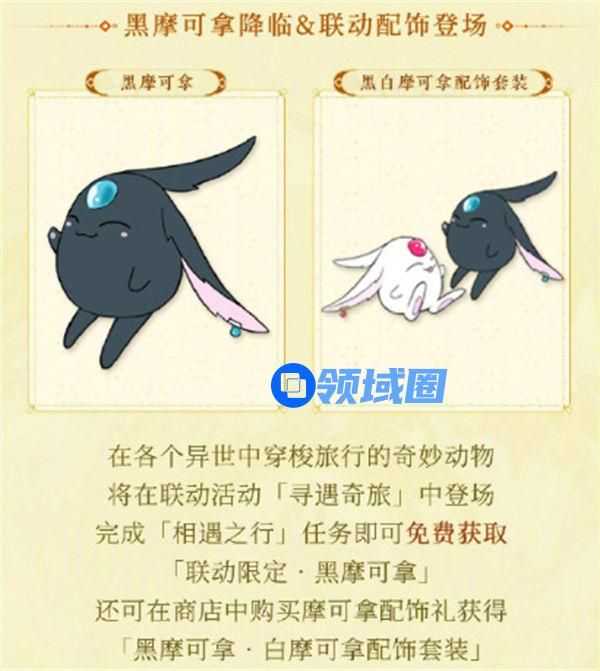 在各个异世中穿梭旅行的奇妙动物将在联动活动「寻遇奇旅」中登场完成「相遇之行」任务即可免费获取「联动限定·黑摩可拿」