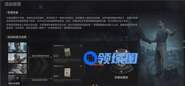 活动期间乔尔会把交易区的位置给到各位先锋,现场除去在交易区的几位首领,还会有海军运来的武器和多斯交易用的手提箱。里面除了武器还有【北方联合币】产出,可以在山谷交易界面兑换你需要的武器装备。