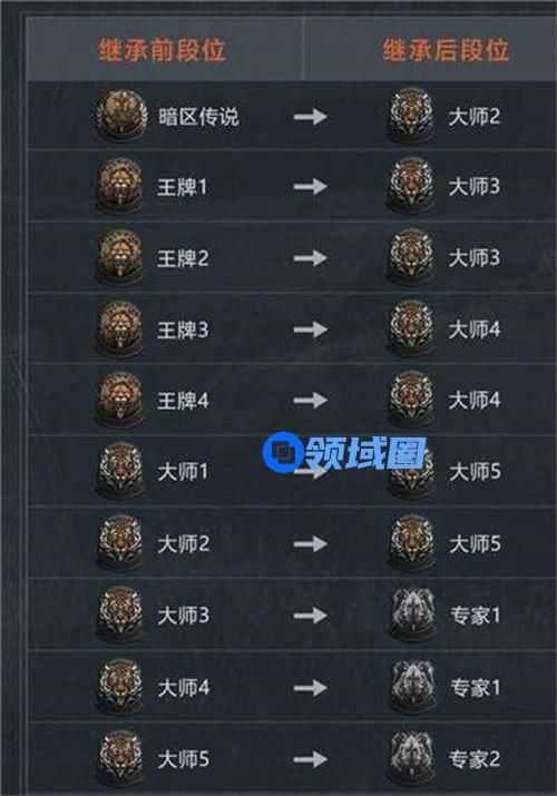 以上就是暗区突围s2段位继承表分享的全部内容,更多精彩内容攻略请持续关注领域圈,小编将持续更新更多相关攻略。