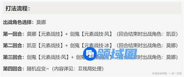 第二回合:凯亚【元素战技】+ 剑鬼【元素战技·冰】(回合结束时出战角色:莫娜)