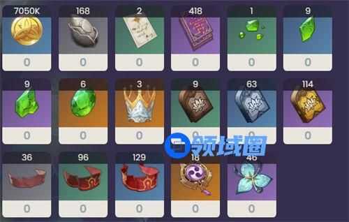 70级突破:生长碧翡块*6、苍砾蕊羽*12、沙脂蛹*45、绸带*12、摩拉*100000