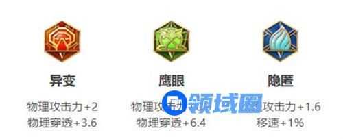异变和鹰眼的百穿效果再加上异变和隐匿的36的物理攻击,能够让关羽的每一刀都特别痛。而隐匿的10%的移速能够让这匹马跑得更快,追杀或者逃跑都很方便。