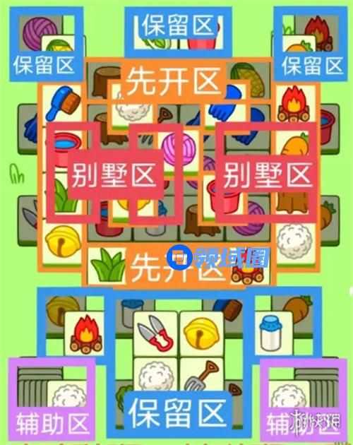 3.必要时可以用紫色盲盒区辅助消除,盲盒区后期不用留太多,留几张备用即可。