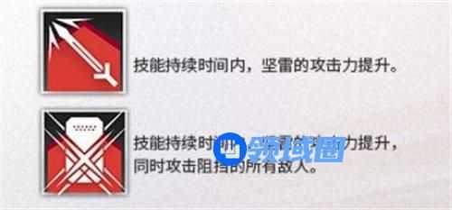 坚雷的一项技能是一项传统的单属性提升技能,亮点不多。然而,当坚雷精英打开第二项技能时,我们可以看到干部最大的区别:当坚雷的第二项技能打开时,她将能够同时攻击所有被她阻挡的敌人。