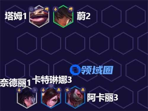 阵容组成:塔姆(福星天选)、蔚、奈德丽、阿卡丽、卡特琳娜