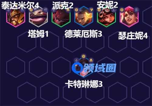 阵容组成:塔姆、泰达米尔、派克、德莱厄斯(福星天选)、安妮、瑟庄妮、卡特琳娜
