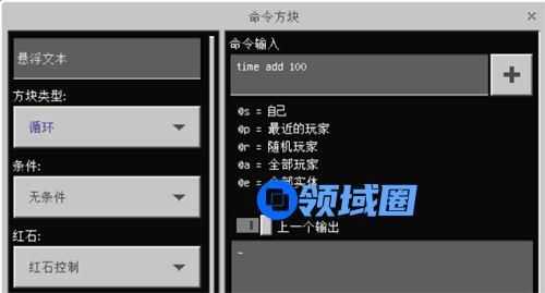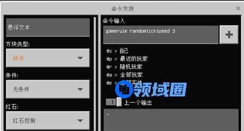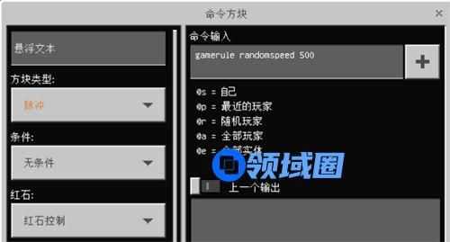 方块类型设置为脉冲条件为无条件红石设为红石控制