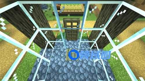 最后修补好地面,中间放一块压力板,并给房子配上全景玻璃窗