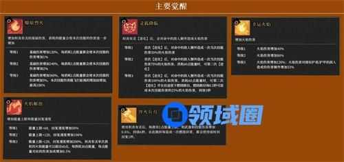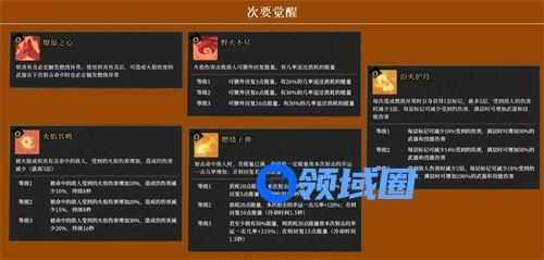 根据前面提到的技能机制,我们不难看出想要提升【炽炎有灵】在游戏中的表现,我们可以直接从技能伤害、能量上限、能量回复速度三方面下手。因此在觉醒方面主要推荐以下几个: