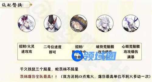 低配:千姬>久次良>铁鼠>SP大蛇>SP茨木