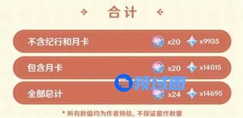 整个版本的原石约为9935~14695原石,因玩家氪金的内容不同,所以也有所不同。