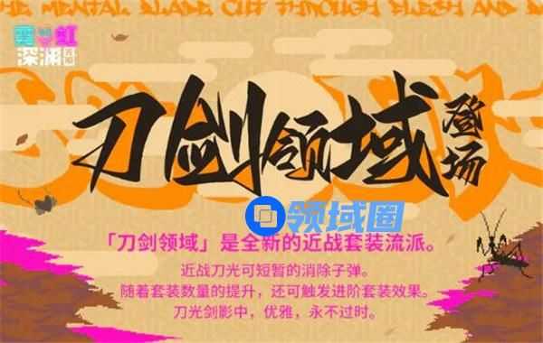 刀剑领域是在原有纪念品的基础上,增加的一个套装效果。在面对房间里的怪物四面包围时,可以在短时间内,击落敌方的子弹。赢得一点点生存空间的同时,胜利的天平也随之倾斜而来。