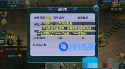 2、参与帮派竞赛每场战斗结束后,根据胜负获得经验和帮贡,还有可能获得游戏中道具物品奖励;
