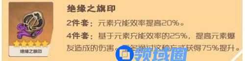 1:绝缘旗印,这套圣物套装是雷电将军的最佳适应,四件套伤害可以直接提高元素爆发的效果,非常适合雷电将军;