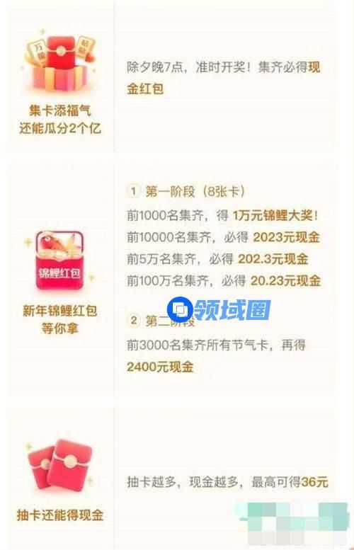 成功集齐八张节气卡之后就可以获取到除夕夜当晚红包瓜分的资格;