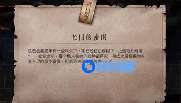 见闻:玉贵妃的遗书+老旧的密函+玉贵妃的日记残页=隐藏的真相(解锁奖励:圣物·咒杀)