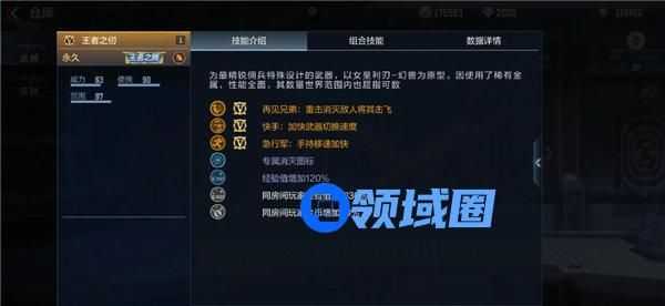 更重要的是,王者之仞的重击表现极为突出,它拥有1.31米的重击距离和52度的重击范围,这个数据即使在王者近战武器中也是能名列前茅的。而且除了轻击范围略低、移动速度相同之外,王者之仞的各项性能都超越了王者之锋,所以大家完全不用担心它的实战表现。最后,王者之仞的“再见兄弟”属性会在重击消灭敌人时将其击飞。虽然该属性无法为持有者提供实战加成,但可以给你带来更真实的击打感,让你的手感和信心都得到增强,越战越勇!