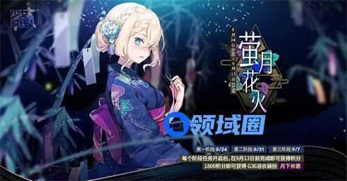 新纲领活动“萤月花火”即将开始!8月24日00:00~9月13日23:59,完成任务获得积分,可获得丰厚奖励!任务共计3000分,达到1800分。G36浴衣装扮“月下祈愿”!竹影剪月,花火流光。详见下面的展示!