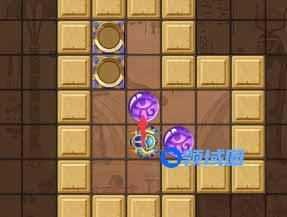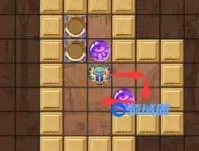 3、绕到下方的珠子右侧将珠子顶到左侧。