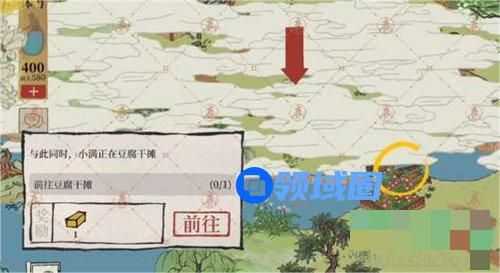 5、来到豆腐干摊的位置,点击断桥修复,即可解锁迷雾前往豆腐干摊;